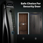 قفل دیجیتال درب با تشخیص چهره 3D، اثر انگشت، رمز، کارت و اپلیکیشن WiFi. امنیت پیشرفته با طراحی لوکس، مناسب خانههای هوشمند و پروژههای خاص.