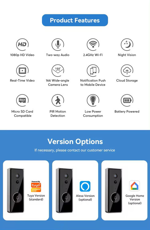 زنگ درب تصویری WiFi هوشمند Tuya