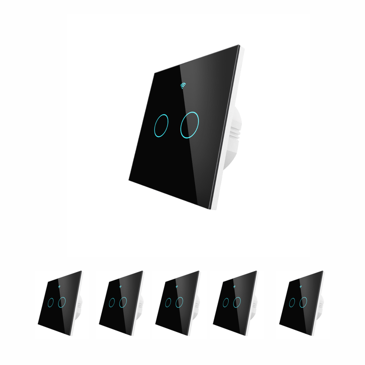 پکیج 5 تایی کلید 2 پل مشکی WiFi RF هوشمند لمسی Tuya برند Green Smart مدل GST-WRS-EU2