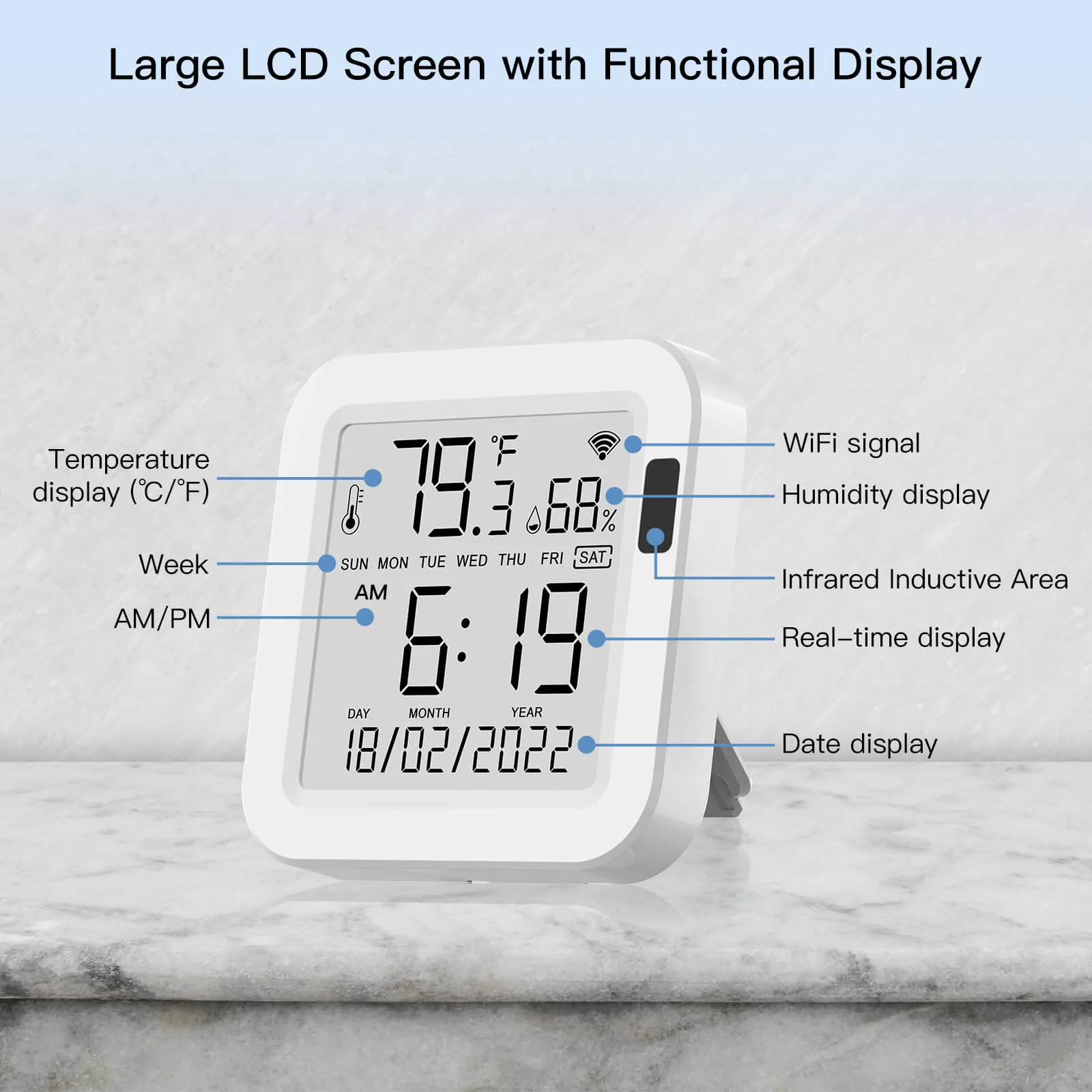 سنسور هوشمند WiFi دما و رطوبت با نمایشگر MOES مدل WSS-FL-TH16-WH-EN