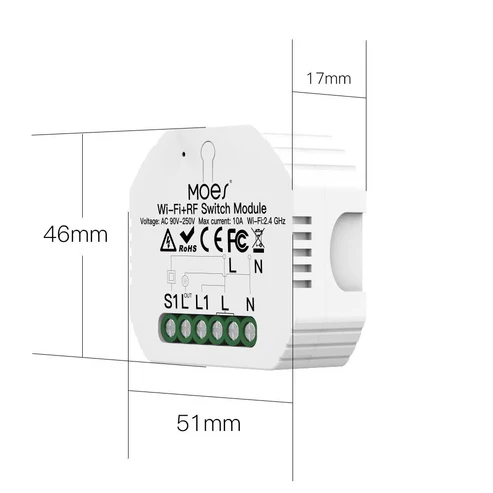 رله هوشمند دو پل 10 آمپر RF , ZIGBEEبرند Moes مدل BZR-104B-MS